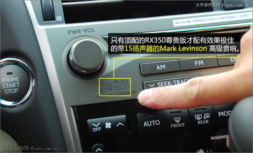 中控臺上醒目的Mark Levinson標示讓人肅然起敬。在頂配的RX350尊貴版上,雷克薩斯為消費者裝配了這套帶有15揚聲器的高級音響。為了體驗這套音響的實際效果,小編現場在新RX350車內試聽了韓紅的《天路》。《天路》的高音部分對于音響是個很大的考驗,我們把音量開關開到最大,任然沒有半點雜音,讓人有置身于高級交響樂廳的感覺。一曲結束,余音繞梁,穿透心靈,讓人欲罷不能。