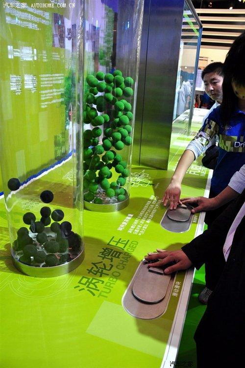 在福特的展臺,為了向大家演示福特的渦輪增壓技術,福特特意設計了這個對比“吹小球”的裝置告訴大家:有渦輪增壓器的車型會比普通車型擁有更大的進氣壓力。
