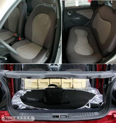 座椅方面瑞麒M1采用的是絲織物座椅,駕駛席采用手動四向調節方式,前后排座椅寬大,乘坐舒適。后排座椅提起調節按鈕,可以講整個后排座椅靠背放倒,提高后備箱的儲物空間。