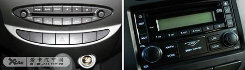 熊貓的多媒體也不示弱,也同樣配備了CD+mp3接口音響系統這一點他們如此的相似。但是熊貓帶來了FM的聲音。這對在行車中聽新聞的人來說是個不錯的選擇。