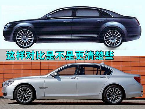 從側面看,能夠更直觀看出它與寶馬7系的相似度,同樣的車頂弧線、高腰線,甚至連多輻輪轂都相當神似,不過寶馬所推崇的后窗內旋弧度沒有被搬走。