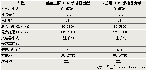 東風雪鐵龍世嘉三廂和標致307動力系統相同,都是1.6升直列4缸發動機并且同時運用了電子節氣門技術,該技術可以能根據駕駛員的需求愿望以及整車各種行駛狀況確定節氣門的最佳開度,,確保了車輛最佳的動力性和燃油經濟性。兩款車型的動力輸出完全一樣,但是由于各自的整備質量和設計不同,所以在最高時速和油耗上有所區別。兩款車型的變速系統均是5速手動變速箱。制動方式兩款車型均為前通風盤式后實心盤式的剎車。