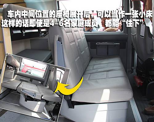 當然,為了滿足全家人出游都能夠獲得舒適的休息環境,在車內的后排座椅還可以放倒并形成一張小一號的雙人床。而在這張床下則是一個隱藏的儲物空間,各個部分的設計非常的人性化。