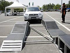 RAV4城市休閑SUV優(yōu)異的底盤調(diào)教,使其行駛在模擬“搓板路”上時(shí),車內(nèi)駕乘人員感覺車兩依然平穩(wěn)舒適。似乎整個(gè)RAV4車身懸浮在底盤之上,之間前后懸架在上下調(diào)節(jié)從而適應(yīng)路面狀況。