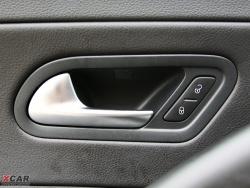 雖然還是那么熟悉的儀表臺,但尚酷還是有自身獨特的設計。車門上的三角形扶手造型很不錯,搭配銀色仿金屬裝飾很大程度上提升了車內的質感。旁邊圍繞著日常相關的操作按鈕,不過一鍵式車窗升降按鈕被藏在三角形扶手內側,在使用時經常會與扶手“打架”,略顯不便。