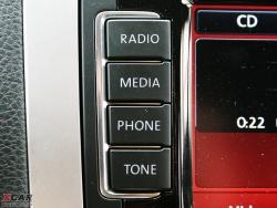 導航系統整合在系統之中,界面友好操作難度低,而且地圖版本較高。藍牙系統則需另付費選裝單獨的模塊。如此豐富的多媒體系統相當值得推薦,也難怪在小到POLO大到途銳都會將其列為高檔選裝配置,只是這臺試駕車的系統還未漢化。