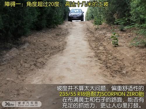 首先,我們先來到了第一個坡度超過20度高達(dá)十幾米的土坡。這時安德拉所配備的DCS下坡輔助功能終于有了用武之地,其實(shí)坡度并不算最大的問題,布滿黃土和石子的路面,讓我們對安德拉所使用偏重操控性的235/55 R18倍耐力SCORPION ZERO胎的抓地力有所擔(dān)心。這時一味的沖動和冒險絕對是不明智的,副駕駛的探路顯得尤為重要。