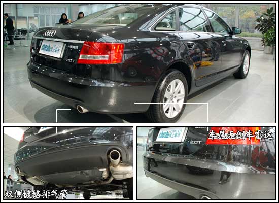A6L尾部上方由圓潤的流線型改為略微翹起的棱角,具有擾流板的功效,同時也使尾部造型更顯硬朗和運(yùn)動化。在車尾部分“公務(wù)版”A6L的特征在于取消了倒車?yán)走_(dá),但整體造型上左右雙出式的鍍鉻排氣管依然很有氣勢!