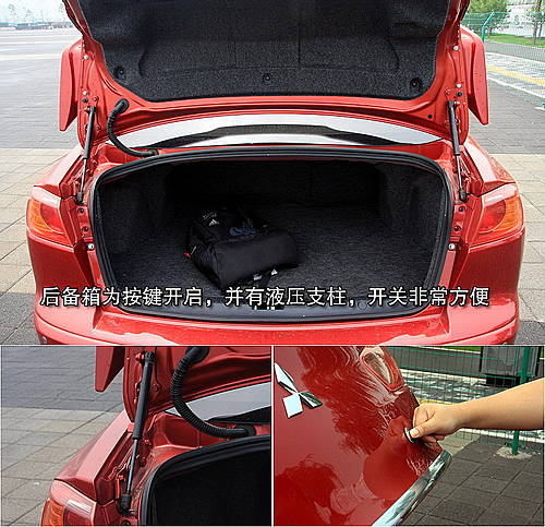 后備箱的開口尺寸比較小,但是采用了電子按鍵開關和液壓支柱,提高了日常使用的便利性。