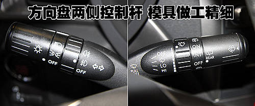 方向盤(pán)左右兩側(cè)控制桿為塑料材質(zhì)。無(wú)論是看上去還是觸摸時(shí)都能感覺(jué)到這部分材料的工藝質(zhì)量很好。