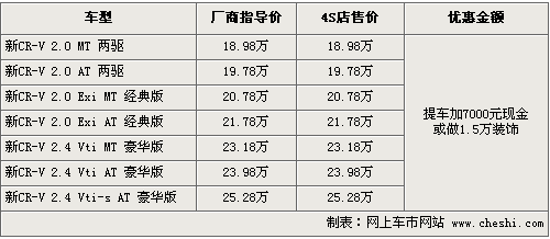 據4S店銷售人員介紹,目前購買本田CR-V仍需要加價提車,需要加現金7000元或者加1.5萬元的全車裝飾,裝飾包括了腳墊、尾翼、行李架、踏板等。消費者可根據需求選購,但是必須達到1.5萬元的消費金額。目前2.0和2.4自動檔有黑色、銀色現車供應,其他特殊顏色還需要預定。
