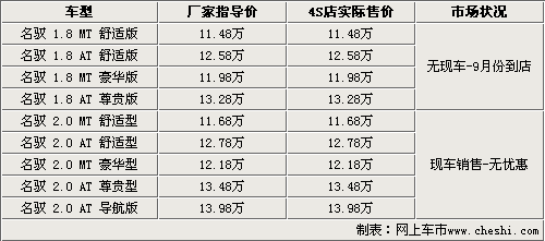 據北京地區現代4S店銷售人員表示,現在各4S店內均有MOINCA名馭2.0L現車銷售,由于是剛剛上市的新車,所以在價格方面沒有任何優惠。至于1.8L車型,銷售人員則表示,1.8L車型要到9月份才能到店,目前接受現金預定。銷售人員還表示,1.8L的MOINCA名馭將主要面對出租車市場,所以客戶需要等待較長一段時間。