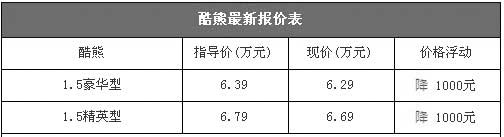 據(jù)經銷商介紹,目前店內酷熊除了天窗版仍舊沒有現(xiàn)車需要預訂之外,其他兩款車型均有現(xiàn)車,隨時到店均可提車。以上價格均可直接提裸車,并且可銷往外地,據(jù)店內銷售人員介紹,酷熊的定價太低,因此銷售利潤非常少,因此降價空間不大。