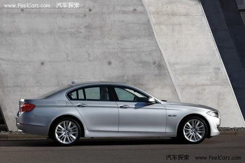 車身側面的線條簡潔流暢,尾部肌肉感十足。從側面可以看出稍微前傾的前格柵似乎為車身帶來了前沖力。寶馬一向盡可能短的前懸和最長的軸距構成了車身完美的比例,類似跑車的車頂刻意營造成coupe外型,輕易的就能5系在茫茫車海中脫穎而出。