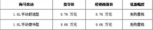 隨著年末的臨近,明年的購置稅新政成為城中話題。近日新政策公布,明年優(yōu)惠收縮至75折,讓不少觀望的朋友緊張起來。車天下編輯從昆明合達獲悉,為滿足消費者年底購車的迫切希望,現(xiàn)推出海馬歡動1.8L全系車型免購置稅活動。具體車型及詳細(xì)優(yōu)惠政策,如下表: