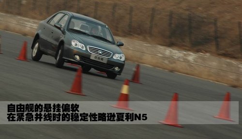 相對(duì)于夏利N5和新羚羊,自由艦在緊急制動(dòng)時(shí)的點(diǎn)頭現(xiàn)象比較嚴(yán)重,駕駛員在車內(nèi)會(huì)有明顯“下扎”的感覺(jué)。在同等速度下,自由艦較重的車身會(huì)帶來(lái)更多的慣性,使制動(dòng)距離相對(duì)較長(zhǎng)。