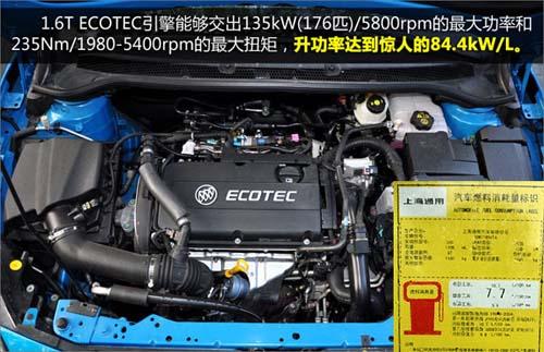 英朗則產自我們并不陌生的Delta II平臺。這一平臺最顯著特征便是ECOTEC系列發動機和前麥弗遜后扭力梁式半獨立懸架,科魯茲、英朗以及還未露面的新一代凱越都是Delta II平臺的代表作。敏感的車友肯定會聯想到科魯茲的DVVT ECO1.8引擎和新君威的1.6T渦輪增壓引擎,的確他們的硬件主體是一模一樣的。135 kw的最大功率,從數值上看比我買車前去4S店調查過的2.4L、甚至1.8T發動機的功率都大,再配上只有4419 mm長、1475 kg重的“小車”,沒有親身體驗過的人真不知道超車的那份灑脫和隨意。雖然說英朗只有1.6L的排氣量,但是通用明顯針對英朗發動機進行了調校。