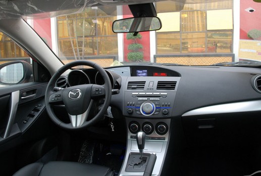 馬自達3的內飾采用了全黑配色,運動取向立現。中控臺設計甚為特別,自上而下分布的功能區域其實處在不同的平面之上,也就是說,馬自達3的中控臺是立體的褶皺面。儀表臺上,是兩個碩大的的炮筒狀儀表,至于行車信息顯示則居于中空最上方一弧形內。作為一輛進口車,馬自達3用他精致的內飾做工告訴我們什么是原裝日本車的質感,只有英朗的內飾工藝能與之一拼。