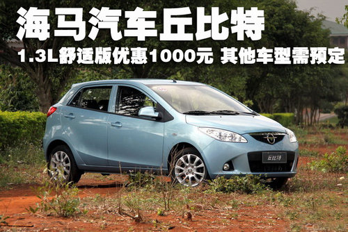 據海馬汽車4S店銷售人員介紹,在丘比特4款車型當中,售價5.89萬元的1.3L手動舒適型性價比較高,也已成為丘比特銷售的主力車型,可以享受1500元的現金優惠。其他兩款1.3L車型和1.5L車型均無現車,如想預訂需要交2000元訂金,到車時間為1個月左右。