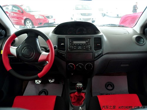 內飾在延續了普通版金鷹的同時,又進行了一些小的改動和創新,最明顯的變化莫過于紅黑相間的新造型方向盤和運動風格明顯的座椅,另外,擋把遮擋處的顏色也改為紅色的皮革材料,鋁合金踏板也有紅色元素裝點。其它方面依然維持了普通版金鷹的造型,中置儀表今天看來已沒有任何亮點可言,整體的功能和配置還是講求實用為主。