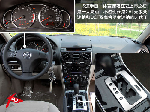 不僅僅外觀時尚,馬6的內飾設計也同樣動感,主打圓形格調的內飾以黑色、米灰色(轎跑版為全黑內飾)為主,讓其內部充滿運動的感覺,而且這款來自日本愛信的5速手自一體變速箱雖然已然過時,但是畢竟維修、養護費用低呀。