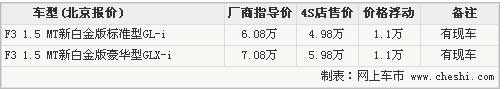 據比亞迪汽車4S店銷售人員介紹,比亞迪F3目前僅有標準版和豪華版兩款車型在售,兩款車型目前均有現車,顏色也比較齊全。到店購車可以享受1.1萬元的現金優惠,標準版降價后跌破5萬,僅售4.98萬元。