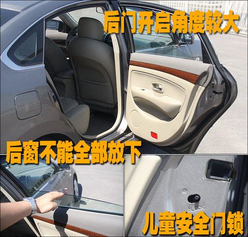 與前車門較大開啟角度幾近相同的設計,讓后排的乘員也可從容的上下車。后排車窗由于車門內在的構造原因無法降至最下端,不過車窗降至最低后的可用面積還是很大的。同時,后門兒童安全鎖充分考慮到了兒童的乘車安全。