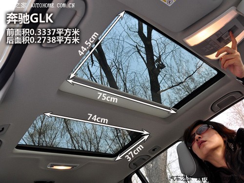 在首次見到GLK的雙天窗時,感覺還是比較喜歡的,但是相比后來的Q5,GLK的天窗就會顯得樸實有余而奢華不足了。說到底,橫在中間那道梁成為了破壞美感的最大障礙。仔細算下來,前后天窗的面積都不大,全加在一起的面積也不足奧迪Q5。注意哦,在此我們僅僅是評價天窗這一項,不含有其他方面的比較。