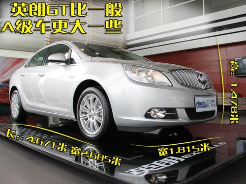 英朗GT的外形尺寸在如今大多數(shù)A級轎車中算是比較大的一個了,他擁有4.671米的車長同時擁有2.685米的軸距。而我們常見的A級緊湊型車?yán)绱蟊娝衮v為2.578米、標(biāo)致307為2.61米,由此可見這臺別克英朗GT也是一款“超尺寸”的A級轎車。