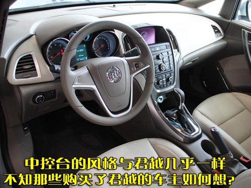 內飾部分英朗GT看上去同樣是一副新君越翻版的樣子。圓弧形的大型儀表臺與車門融合在一起,仿佛將車內的乘員環抱其中。在內飾用料方面真皮、金屬、更加舒適的軟性的塑料都會讓您更加愛上英朗GT。