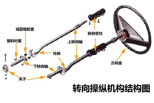 轉向系統的可以大致分為三個部分:轉向操縱機構,轉向器,轉向傳動機構。轉向操縱機構很好理解,就是我們駕駛車輛時直接接觸的部分,它把駕駛員的體力傳遞到傳向系統當中。
