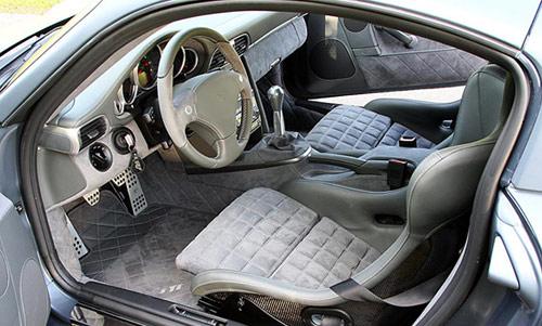 進入CTR3的座艙,既可以看到包裹力極好的碳纖維桶形座椅,讓人有種沖動的欲望。準備開始挑戰,旋轉點火按鈕,這輛RUF的激情會毫無掩飾地被點燃。首先花幾分鐘時間來熟悉一下它的順序式變速箱,尤其是空檔切入一檔的時候。你必須花相當大的力氣來推動排擋桿,否則變速箱會因為咬合不佳而發出巨響。踩下油門,強大的加速感隨即到來,輪胎似乎已經掙脫了地心引力。當發動機達到4000轉后,兩個渦輪增壓器開始發力,它們能產生17.4psi(pounds per square inch 磅/平方英寸) 的壓力,這是相當驚人的數據!