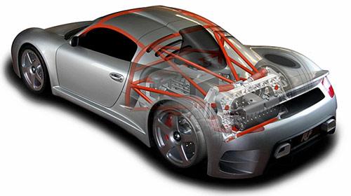 經RUF重新打造的3.7L水平對置六缸雙渦輪增壓發動機,最大功率輸出700馬力/7000轉,扭矩峰值890牛•米/4000轉;并采用六速順序式變速箱,中置后驅的驅動形式;由靜止加速到100km/h僅需3.2秒,極速更是達到了375km/h。正如之前所說,若你認為這只是一款深度改裝的保時捷,那便大錯特錯了。打開CTR3的引擎艙蓋后,你會發現這里擁有大量經典的賽車設計:管狀式車架、多連桿懸掛、水平減震器等等……這些都是RUF與Multimatic of Canada共同開發的產物。