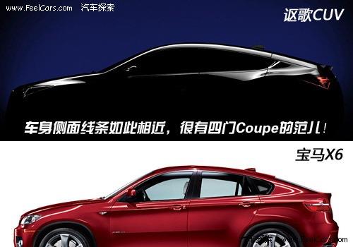 ZDX借鑒了寶馬X6的造型理念,同樣結合跑車的設計元素。整車更加突出運動氣質和肌肉線條,后車門采用隱藏式設計,更加詮釋出跑車的風范。并且謳歌聲稱將在ZDX上應用更先進的技術以及安全性。