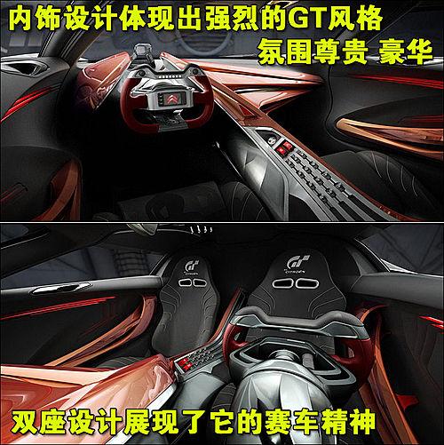 雪鐵龍GT內(nèi)飾的設計體現(xiàn)出強烈的GT風格。其內(nèi)飾設計只能坐下一名駕駛員與一副駕駛,展現(xiàn)了它賽車的精神。內(nèi)飾氛圍尊貴,豪華,駕駛員位置處所使用的材料都極具高科技的效果,靈感則是來自于現(xiàn)實社會中的賽車運動。低駕駛位置的布局帶來強烈的駕駛樂趣。目標是讓駕駛者更加專注于路面,加上輔助功能的抬頭顯示系統(tǒng)可以充分地顯示出駕駛信息。