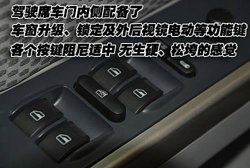 這款車(chē)的駕駛席車(chē)門(mén)內(nèi)側(cè)配備了控制面板,帶有車(chē)窗升降、鎖定、中控鎖及外后視鏡電動(dòng)調(diào)節(jié)等功能。各個(gè)按鍵阻尼適中,無(wú)生硬、松垮的感覺(jué)。