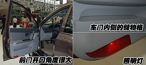 瑞麒X5的前排車(chē)門(mén)開(kāi)口角度很大,可以方便駕駛員及乘員方便的進(jìn)出車(chē)輛。前排車(chē)門(mén)內(nèi)側(cè)設(shè)計(jì)了儲(chǔ)物格,可以存放一些小件隨身物品。而且前排車(chē)門(mén)內(nèi)側(cè)還帶有照明燈,人性化配備非常周到。