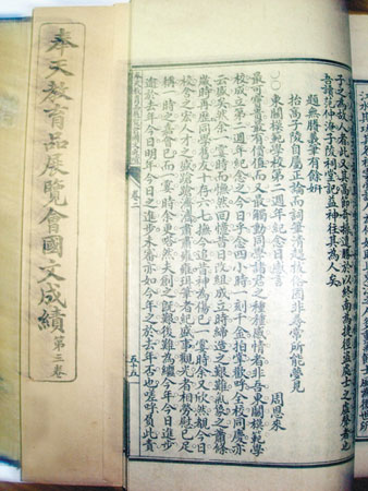 今天(3月5日)是敬愛的周恩來總理誕辰110周年,為紀念這個特別的日子,3月4日,沈陽著名收藏家詹洪閣首次向沈陽日報展示了83年前由奉天圖書發行所印發的《奉天教育品展覽會國文成績》四冊一套的圖書,他小心翼翼地翻開了該書介紹說:“你看,這套書的第二卷55頁、56頁上,刊登了周恩來在沈陽讀書時所寫的一篇作文《東關模范學校第二周年紀念感言》。據我了解,這是目前所發現的周恩來最早的一篇文章。”