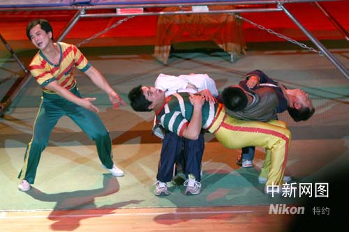 朝鮮平壤國立雜技團(tuán)是中國人民的老朋友,曾經(jīng)多次來中國訪問演出,所到之處,無不受到當(dāng)?shù)赜^眾的熱烈歡迎。他們的招牌節(jié)目《浪橋飛人》、《空中姑娘》、《大跳板》等,均獲得過摩納哥國際雜技比賽和中國吳橋國際雜技節(jié)的一等獎。完