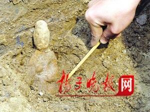 近期,在南京六朝古墓挖掘中,很少有文物出現,基本上是“十墓九空”。在昨天下午的挖掘中,考古人員有比較大的信心。果然在挖到地磚甬道一側時,隨著考古人員手中小鏟刀輕輕一撥,一個陶俑人頭露出土面。接著是完整的身子,“頭上戴著官帽,是一尊男性陶俑,高大約20多厘米!痹谶@尊陶俑的旁邊,還睡著一尊陶俑,兩手抱在胸前,但頭已不知去向,身旁還有幾枚銅錢,考古人員將于今天對陶俑繼續清理挖掘。一位考古人員一邊清理,一邊介紹,“商周時期習慣用活人殉葬,春秋戰國逐漸用模擬活人的俑來代替,其中用陶泥制作,經火燒成的人物形象即為陶俑。陶俑有文武官吏、樂隊儀仗、男仆女侍等。在墳墓中陪葬死者的陶質人形,是為了炫耀墓主人生前的身份、財富、精神信仰!彼f,應當在墓門前甬道兩側各放一尊陶俑,另一尊可能被破壞了。