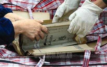 “這些受潮或遭肢解的檔案卷必須要經過除濕、蒸干、消毒、殺蟲、凍干等諸多保護環節。以蒸干為例,失去水分后的檔案會變得像一塊‘硬磚’,只能小心地一層層剝開,每揭一頁夾一層干燥紙來保護。”體態有些發福的張新吃力地蹲在地上,仔細地清點裝有檔案的塑料編織袋,“今天的發掘應該說比較順利,一上午就運走了兩卡車,約有8000多卷,但不少檔案已受潮或碎裂,后期還要仔細修補和保存。”張新說,他們事先準備了1000個編織袋,但到中午時分基本告罄,只得緊急調來1000個支援,“我們樂觀地估計,這次搶救性挖掘能救出五六萬卷文物檔案,基本保住了羌族‘血脈’!”