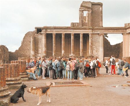 龐貝古城每年約吸引250萬名游客參觀,是意大利最受歡迎的觀光景點之一,許多游客對古城失修都感到驚訝。現時古城內的1500間屋大部分沒有開放,1978年開始的復修工程至今仍未完工。地方官員希望,“緊急狀態(tài)令”可讓古城得到更多撥款及特別保護措施。