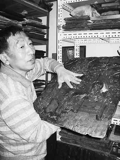 天津:霍慶有介紹其收藏的珍貴年畫古版。楊凱 鄭娜攝