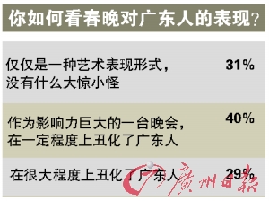 在“你認為央視春晚貶低了廣東人形象嗎?”的調(diào)查中,投票者中超過五成認為:“是。”
