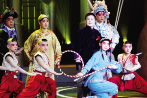 昨晚頒獎晚會上的最大亮點莫過于著名表演藝術家裴艷玲攜眾弟子登臺獻演。在京劇《響九霄》的主題音樂中,裴艷玲的眾位弟子分別扮作哪吒、沉香、武松、林沖、陸文龍、鐘馗、響九霄、趙云等亮相,依次展示各個人物最為觀眾熟悉的經典動作和片段。當裴艷玲唱著《響九霄》的四平調走上舞臺時,掌聲雷動,經久不息,眾弟子圍繞在老師身旁。正可謂“名家寶刀不老,新秀層出不窮”。