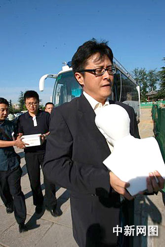 中新網保定6月11日電 (呂子豪 郭英昆 劉向陽)11日上午,中央電視臺新聞聯播著名播音員羅京的追悼會在北京八寶山革命公墓舉行,央視著名主持人張騰岳懷抱羅京漢白玉半身雕像,代表觀眾寄托哀思。河北曲陽縣委宣傳部此間稱,這尊高50厘米、重約30公斤的雕像,是該縣3名雕刻藝人利用兩天時間精心雕刻而成。
