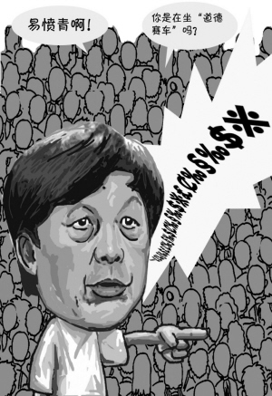 還有網友認為,易中天在地震后第一時間在博客上說自己捐了款,為此,網友也心存疑問:“真捐了嗎?我也可以懷疑你啊,甚至可以懷疑每一個捐款的人!痹摼W友還提出,地震的時候有很多人含淚捐款,那是不是也要問這些人要證據、發票或者收據?“易老師想檢查全國人民嗎?你是在坐‘道德賽車’!