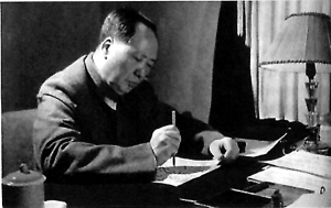 當他走進毛澤東的辦公室,毛澤東正握著一管毛筆,在抄寫唐詩,呂厚民找到位置,打上燈光之后,就拍了幾張照片。