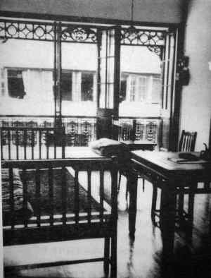 1920年5月5日,毛澤東以“驅(qū)張”代表團成員的身份,從北京來到上海,住在靜安區(qū)原哈同花園附近的哈同路民厚里29號(今安義路63號)。這是一幢磚木結(jié)構(gòu),坐南朝北,沿街而建的舊式二層樓里弄房子。樓下是會客室兼飯廳。樓上的臥室有一排臨街的長窗。室內(nèi)放著兩張床,一只茶幾和一張桌子。桌上擺著粗瓷茶壺,茶杯及筆硯文具。毛澤東就住在這里。同住的還有李思安、李鳳池、陳書農(nóng)等三個湖南學生。他們每人每月僅有3元零用錢。過著十分簡樸的生活。四個人輪流做飯,常吃蠶豆煮飯,生活比較清苦。毛澤東在這里每天都要閱讀各地的報刊和書籍。他還邀請十多位旅滬青年,成立了“自修學社”,共同學習各種理論著作和外語。1920年6月7日,毛澤東寫信給北京的黎錦熙老師,信中談及南下見聞和自己追求革命的決心,說他準備瀏覽在滬“新出的報、雜志、叢書及各種譯本,尋獲東方及世界學術(shù)思想之大綱要目”。