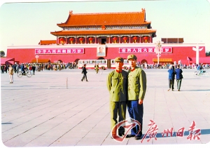 “我們哥倆兒幾乎是同步通過了天安門,這在全國參加國慶閱兵的官兵中都是罕見的!52歲的李鳴捷如今是中國銀行成都高新技術產業開發區支行行長。1984年10月1日上午10時許,展示中國改革開放和現代化建設巨大成就的國慶35周年大閱兵盛典上,李鳴捷在排序第一的軍事學院方隊,鏗鏘正步走過金水橋旁。此時,弟弟李明偉和戰友駕駛的機群,也呼嘯長空,在天安門上空中舞出四色彩煙,共慶盛典。退伍多年,兩兄弟很少主動提及這段經歷,但當年受閱的那身軍裝卻一直珍藏。